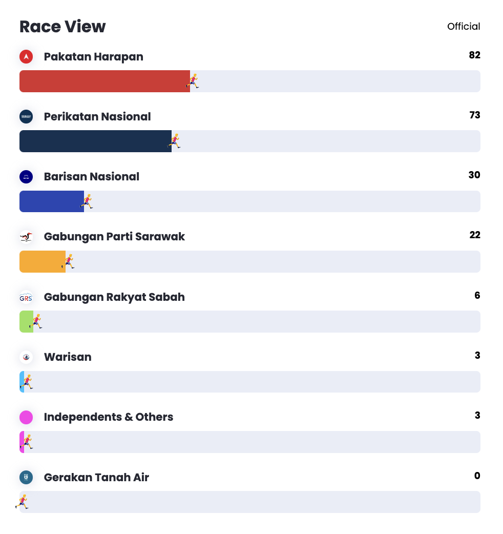 The response of parties from Sabah and Sarawak has been very great for. Subscribe to our Telegram channel for the latest stories and updates. 0140am Pakatan Harapan is currently the coalition with the most seats 56 after the results.